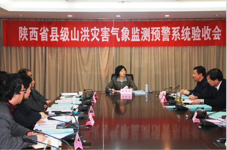 2012年11月29日上午,陕西省县级山洪灾害气象监测预警系统验收大会在陕西省气象局召开,陕西省气象局薛春芳副局长主持会议,省防汛办陈文军总工,省气象局刘安麟副总工,省气象局观测 处李社宏处长,省气象局计财处吕东峰处长,省气象局减灾处段昌辉处长,省气象局观测处邓凤东副处长,省气象服务中心白光弼主任,省气象信息中心杨银见主任,省财政厅陈永荣调研员,省防汛办王晓辉主任科员参加会议。